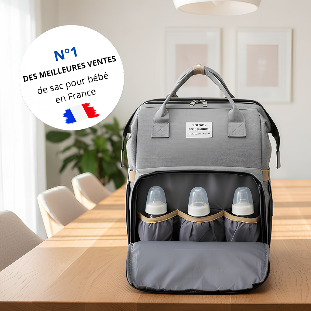 Un sac intelligent qui s'adapte à votre vie. Organisez l'essentiel, reposez bébé confortablement et restez connecté partout.