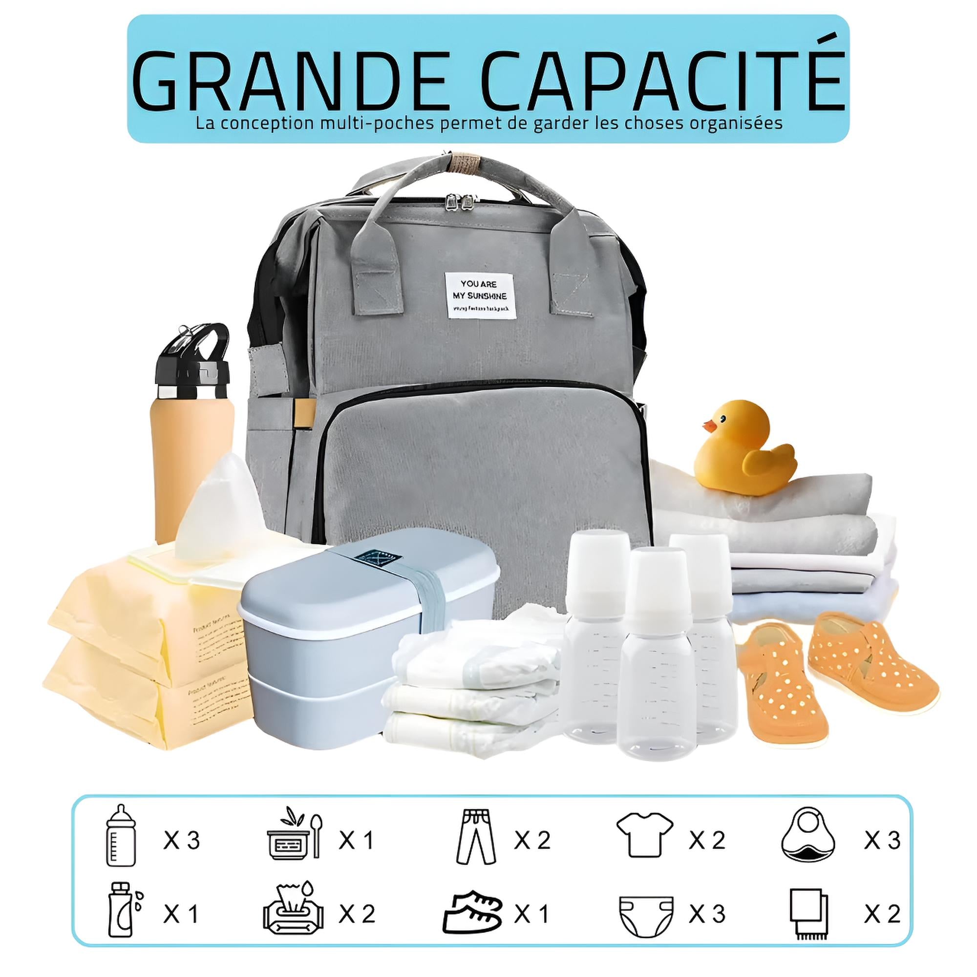 Un sac intelligent qui s'adapte à votre vie. Organisez l'essentiel, reposez bébé confortablement et restez connecté partout.